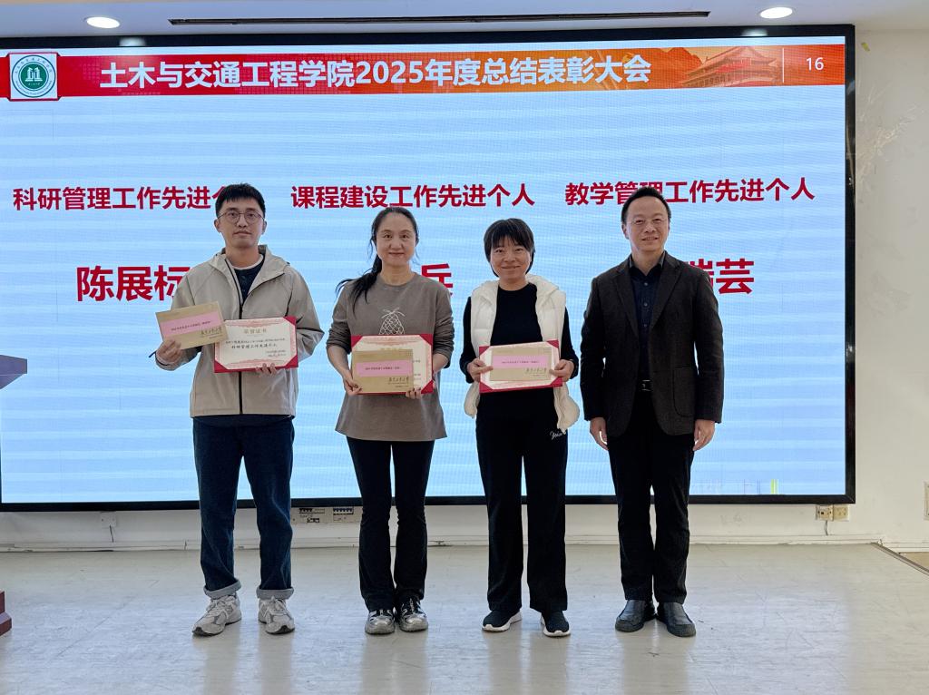2025年度先进集体和个人的决定》,授予测绘遥感系、汇心心理辅导站“2025年度先进集体”称号,授予庄丽贤等17名教职工“2025年度工作先进个人”称号,并由周建强为受表彰的集体和个人颁发荣誉证书和奖励金。