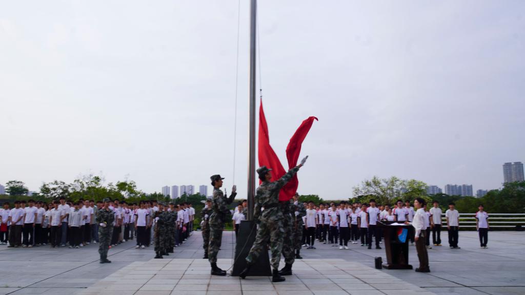 伴随着雄壮激昂的《中华人民共和国国歌》,五星红旗冉冉升起、迎风飘扬。全体师生肃立行注目礼,眼神中饱含对祖国的无限崇敬与热爱。